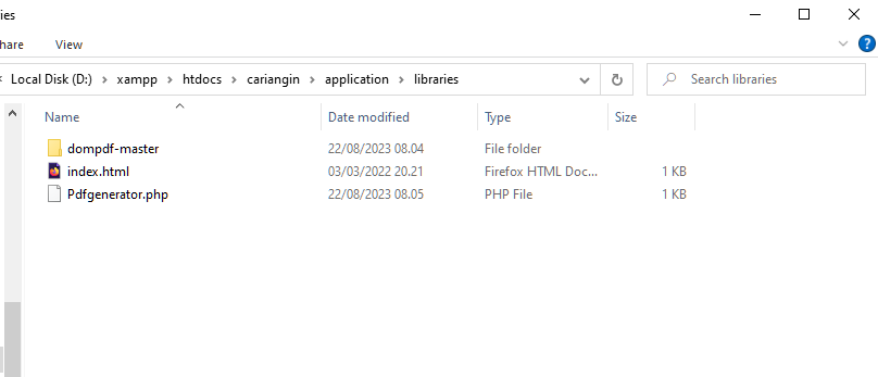 Download library DOMPDF melalui link ini atau melalui Google Drive.