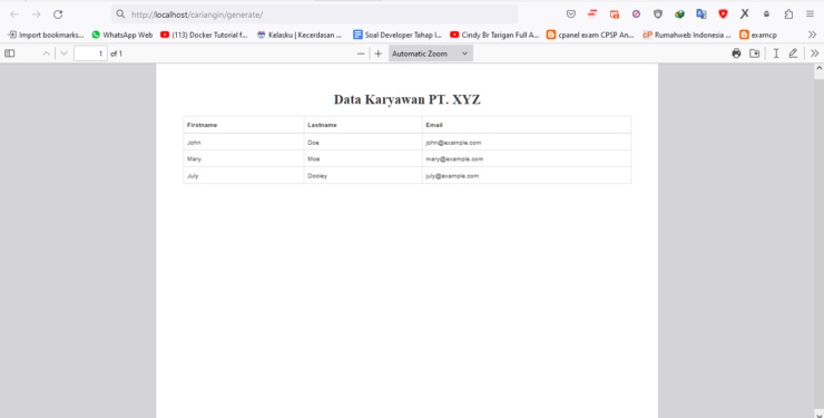 Sampai tahap ini, Anda telah berhasil mengimplementasikan library dompdf di CodeIgniter 3. Anda perlu memahami konsepnya, agar dapat diimplementasikan dalam bentuk lainnya di website CodeIgniter 3 yang Anda buat.